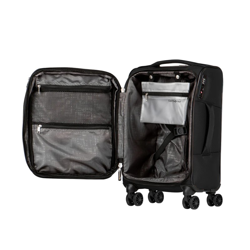 The Samsonite Hyperspin 3 Spinner 20" is perfect as carry-on luggage. Made from durable polyester, it combines lightness with great functionality. Its 360° dual-spin wheels ensure smooth, effortless rolling, while its flexible and modern design is ideal for short getaways or frequent business trips.