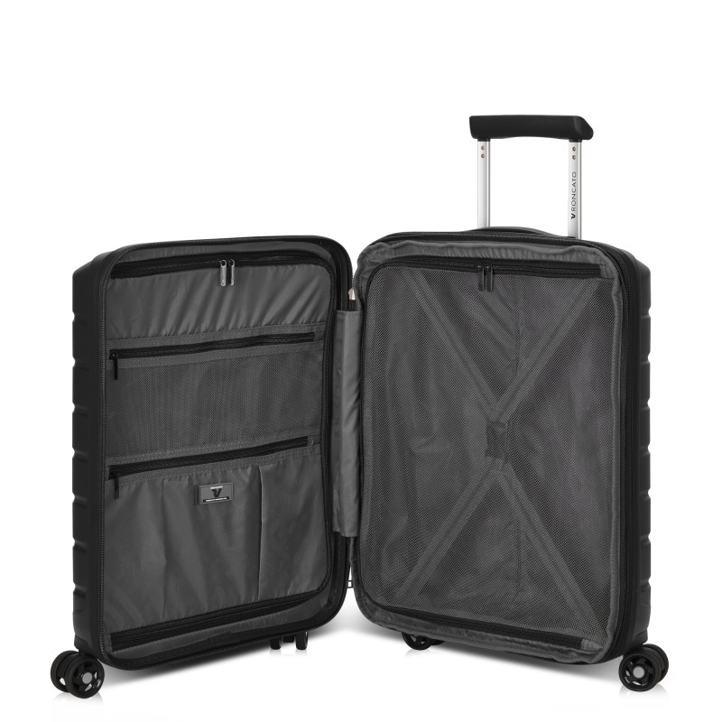 La maleta Roncato Butterfly de 55 cm combina elegancia, funcionalidad y diseño italiano en un formato compacto ideal para viajes cortos. Apta como equipaje de mano en la mayoría de aerolíneas, ofrece un sistema expandible, organización interna eficiente y desplazamiento fluido gracias a sus ruedas dobles. Fabricada con materiales duraderos y livianos, esta maleta garantiza protección y estilo donde vayas.