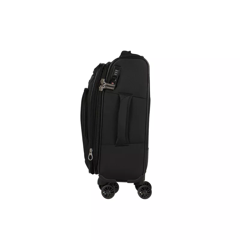 La Samsonite Hyperspin 3 Spinner 20" es perfecta como equipaje de mano. Confeccionada en resistente poliéster, combina ligereza con gran funcionalidad. Sus ruedas dobles giratorias de 360° garantizan un desplazamiento suave y sin esfuerzo, mientras que su diseño es flexible y moderno. Ideal para escapadas cortas o viajes frecuentes de negocio.