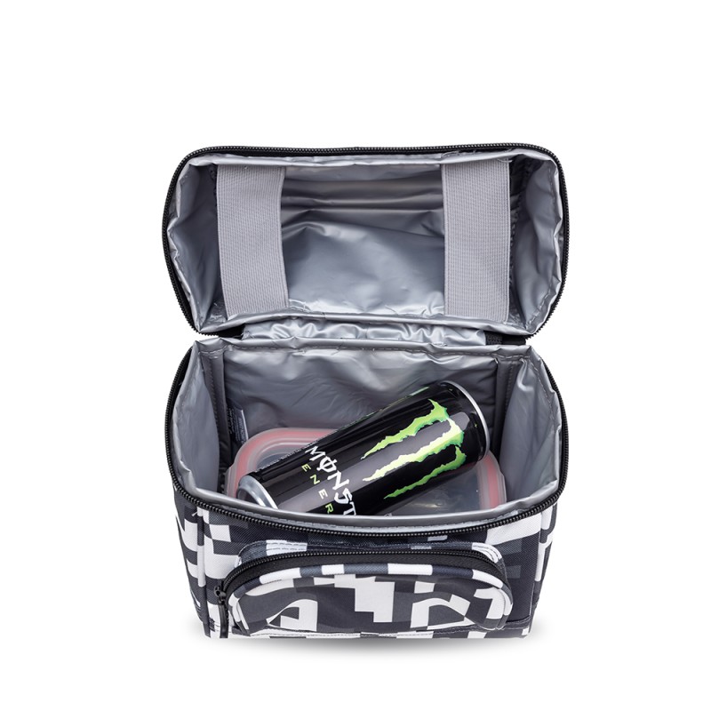 ● Compartimento principal para el almuerzo. ● Bolsillo frontal para cubiertos. ● Empuñadura en la parte superior ● correa de botella de agua en el interior