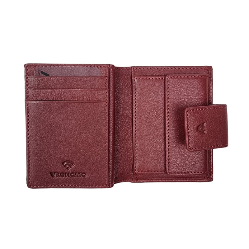 Elegante y compacta, esta cartera para mujer de la colección Roncato Pocket en color burdeos ha sido diseñada para quienes buscan funcionalidad sin renunciar al estilo. Fabricada en piel auténtica de alta calidad, ofrece una excelente durabilidad y un tacto suave. Su diseño incluye un amplio compartimento principal, un espacio para billetes, monedero con cierre de botón y un porta documentos con protección RFID que protege tu información personal frente a escaneos no autorizados. El logotipo metálico de Roncato en la parte frontal le da el toque final de distinción. Ideal para el uso diario y para llevar de forma segura lo esencial.