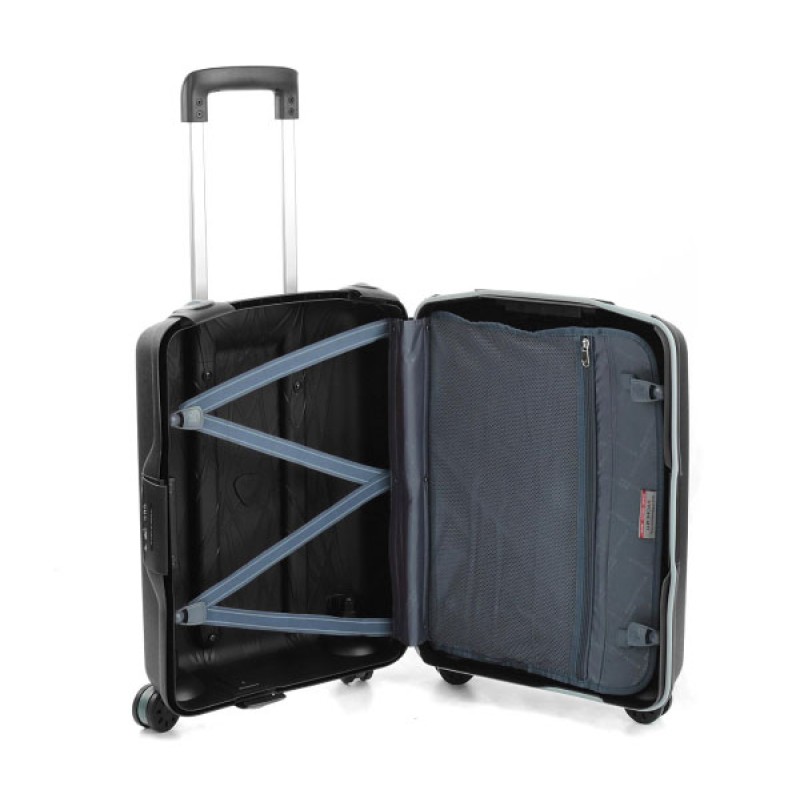 The Roncato Light Carry-On is an eco-friendly and practical suitcase designed for travelers who value both style and functionality. Made of 100% recyclable polypropylene, this model combines strength, lightness, and sustainability by minimizing CO₂ emissions during production. Its compact design fits most airline cabin size requirements, though checking with your carrier is recommended. Equipped with a reinforced locking system and TSA-approved lock, it ensures maximum security throughout your journey. Inside, the suitcase features elastic straps, a zippered divider, and accessory pockets for efficient organization, while its four double spinner wheels with impact protection provide smooth mobility on any surface.