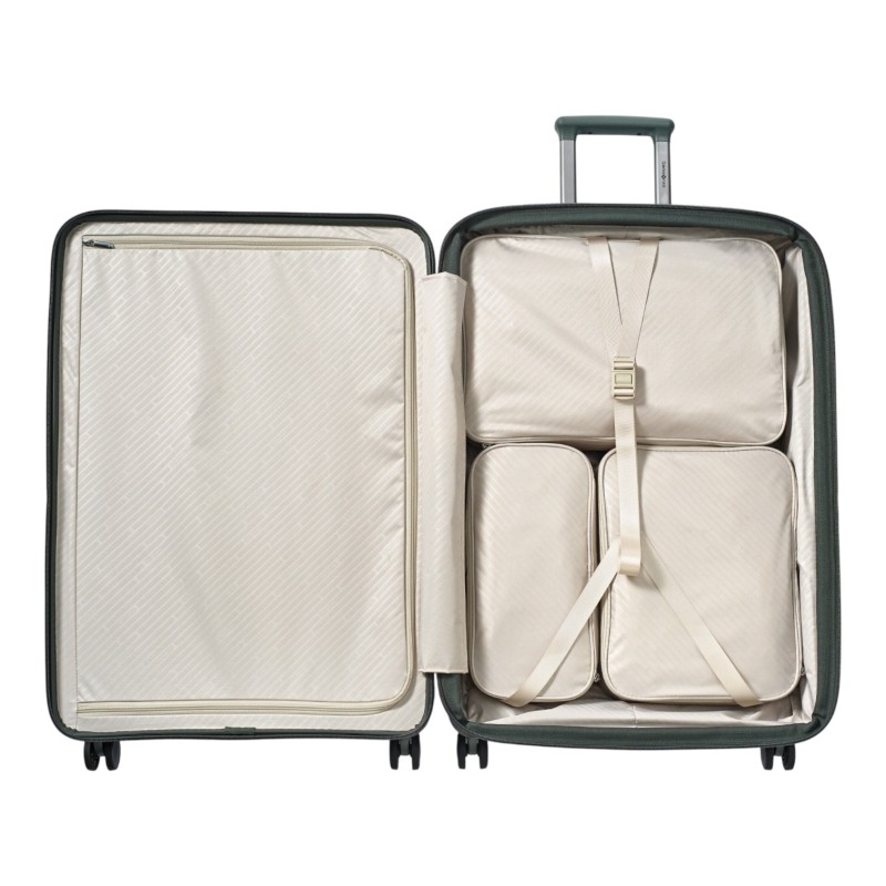 La Samsonite PARALUX SP75/28 EXP Large Spinner en color Olive destaca por su diseño funcional, resistente y sostenible. Ofrece doble acceso al interior —frontal y central— para mayor comodidad al empacar, además de cubos de empaque removibles que permiten organizar tus pertenencias con precisión. Con ruedas dobles de suspensión, cerradura TSA y materiales reciclados, es una maleta diseñada para durar y viajar con estilo.