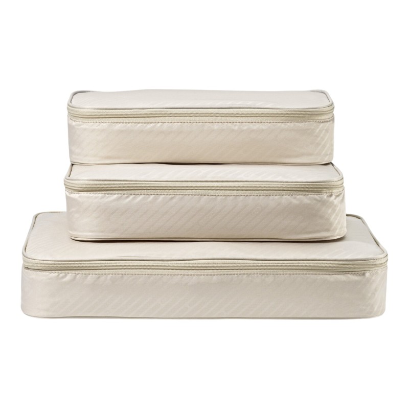 - Incluye tres cubos de empaque removibles para organización eficiente.